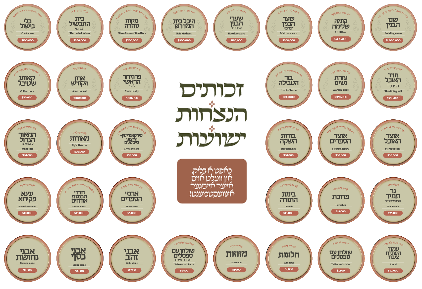ווי אויך וועט עס פארמאגן אן הערליכע מקוה מהודרת, אויסגערישט שיין און ריין, געבנדיג צו שפירן ווי מ’זאל ווען זיין ביי זיך אינדערהיים. די ועד לייגט נאך אריין אסאך כוחות אין די טעג צו איבערגיין אלע איינצלהייטן, און אזוי פארזיכערן אז די בנין זאל זיין א דבר השלם אויסגעשטאטעט פאר אלע באדערפענישן. די אידן וואס טוען ביישטייערן פאר אזא הייליגע צוועק זעען אפענע ישועות, מ’זעט באשיינפערליך ווי די הייליגע טשענגערער רבנים זי”ע טוען זיך מיען פאר אלע אידן וואס שטרענגען זיך אן צו טון א טובה פאר זייערע נשמות. די אקטיווע אין די פראיעקטן שטייען און שטוינען נאכן הערן האר-אויפשטעלנדע געשיכטעס פון אידן איבער די גאנצע וועלט, מיט וואונדערבארע ניסים שלא כדרך הטבע וואס זיי האבן בייגעוואוינט נאכן ביישטייערן פארן הייליגער טשענגער ווינקל. קויפט אייך איין געוואלדיגע טשענגערער זכותים! די זכות פון מרנן רבותינו הקדושים זצוק”ל וועט אייך זיכער מגין זיין און באגיסן מיט השפעות עד בלי די.